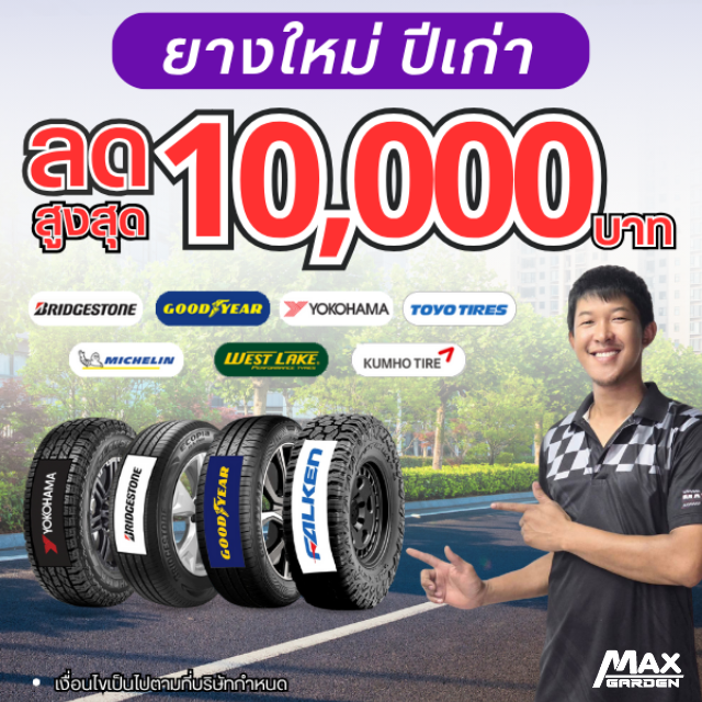 • ตัวอย่าง: ยาง 4 เส้น มูลค่า 12,000 บาท → ผ่อนเพียงเดือนละ 1,000 บาท*