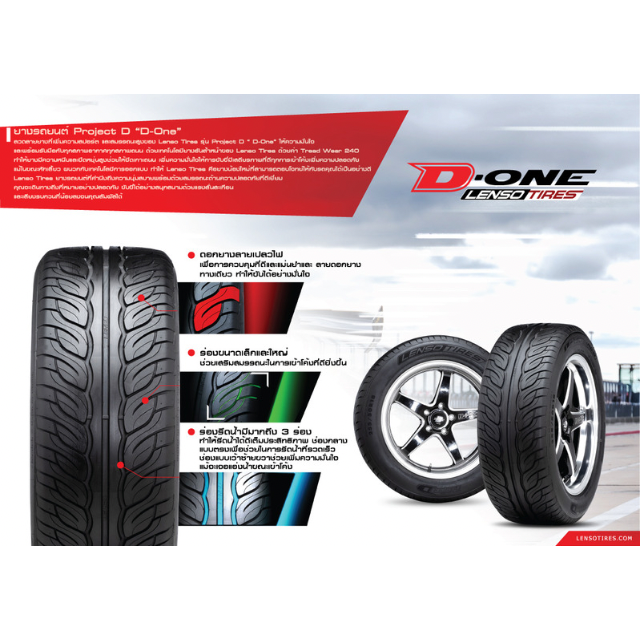 ลวดลายยางที่เพิ่มความสปอร์ต และสมรรถนะสูงของ Lenso Tires รุ่น Project D “ D-One” ให้ความมั่นใจ และพร้อมรับมือกับทุกสภาพอากาศทุกสภาพถนน ด้วยเทคโนโลยียางอันล้ำหน้าของ Lenso Tires